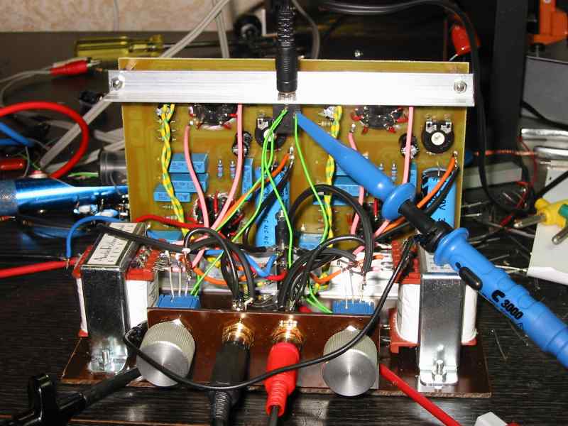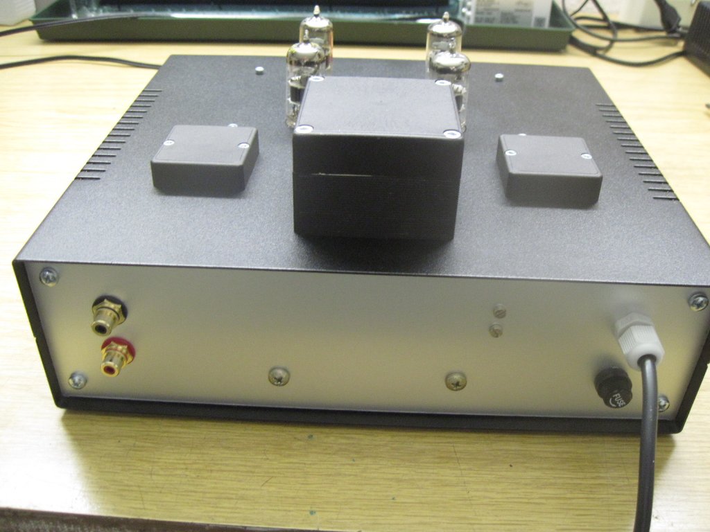 Alles fing an mit einer "Schnapsidee" und endete letzt endlich in dem hier vorgestellten Gegentakt- verstärker. Das "Verstärkerchen" hat ausreichend Leistung um auch etwas Leistungshungrige Kopfhörer zu versorgen. Durch die Gegentaktschaltung ist Brumm absolut kein Thema. Für die Dimensionierung der Schaltung habe ich eine für Röhren extrem niederohmige Variante gewählt. Das brachte mir folgende Vorteile : - Die