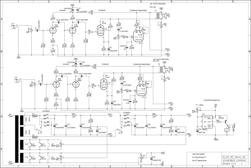 | 1 | Netztrafo 2 x 300V/140mA 2 x 6,3V / 5A |