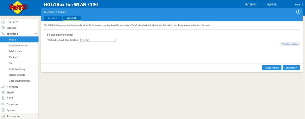 Das zuvor eingerichtete Telefon mit der Wählhilfe verbinden.