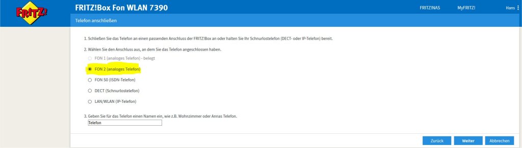 Analogen Anschluß wählen. Der unter Punkt 3 vergebene Namen erscheint im Telefon wenn es an der Tür klingelt.
