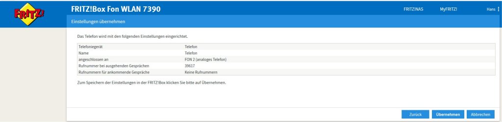 Einrichtung ist hiermit abgeschlossen. Es empfiehlt sich die Fritzbox nochmal zu booten.